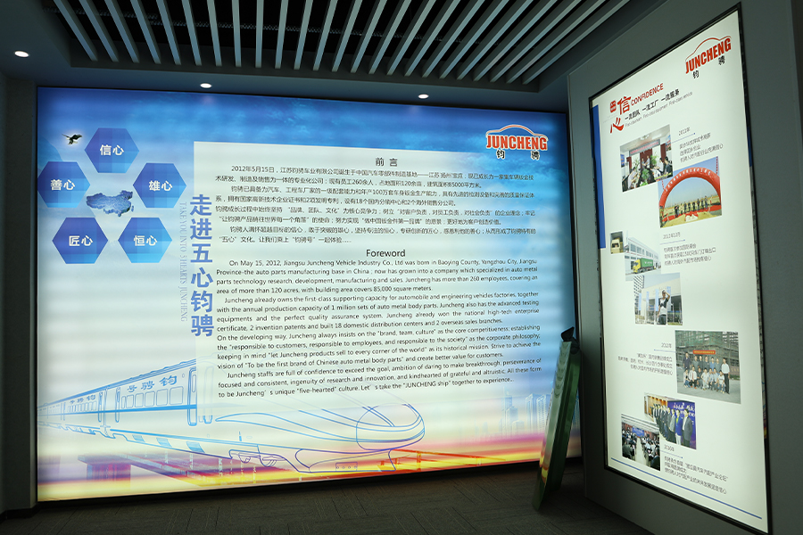 تأسست شركة JIANGSU JUNCHENG VEHICLE INDUSTRY CO.,LTD. في 15 مايو 2012 وتقع في مقاطعة باويينغ،مدينة يانغتشو، مقاطعة جيانغسو - وهي مؤسسة لتصنيع أجزاء المعادن للسيارات. برأس مال مسجل قدره 52 مليون يوان،تتخصص شركة JUNCHENG في دمج البحث والتطوير التكنولوجي وتصنيع وبيع أجزاء السيارات المعدنية. تمتلك JUNCHENG الآن ثلاث قواعد إنتاج وشركة تجارية دولية وشركة مبيعات محلية واحدة، تغطي مساحة 120 فدانًا مع مبنى مكاتب بمساحة 85000 متر مربع. لقد حصلنا على شهادة نظام الجودة الدولي ISO-TS16949:2002 في مايو 2014.تملك شركة JUNCHENG الآن حوالي 260 موظفًا، بما في ذلك 62 موظفًا حاصلين على درجة جامعية أو أعلى، و28 ماجستير تقنيًا يحملون لقبًا مهنيًا كبيرًا. كمؤسسة وطنية للتكنولوجيا الفائقة. قامت شركة JUNCHENG على التوالي بالتعاون الصناعي والجامعي والبحثي مع جامعة جيانغسو وجامعة هيفاي الصناعية وجامعة ووهان للفنون التطبيقية ولديها براءتي اختراع و20 براءة اختراع لنماذج المنفعة. استوردت شركة JUNCHENG معدات إنتاج ومعالجة أوتوماتيكية متقدمة ومعدات اختبار، بما في ذلك 4 خطوط إنتاج ختم متقدمة محلية ودولية، و4 خطوط إنتاج لحام.1 خط إنتاج طلاء كهربائي EDP،أكثر من 20 قطعة من معدات القطع بالليزر الروبوتية من ABB، بالإضافة إلى آلة قياس الإحداثيات، وآلة اختبار رش الملح، وآلة اختبار الشد، وآلة اكتشاف العيوب، بإنتاج سنوي يبلغ مليون مجموعة من الطاقة الإنتاجية لأجزاء هيكل السيارة المعدنية. JUNCHENG هي المورد الأول لمصنعي السيارات مثل Huatai Automobile وFAW GM Hongta وZhidou Automobile وGuoji Zhijun؛توفير الدعم من الدرجة الأولى لتجميع الصفائح المعدنية والكابينة للمركبات الهندسية مثل ألمانيا KION Baodi و Tongli Heavy Industry و Sanjiang Waliite وتطوير أجزاء الصفائح المعدنية لجميع السيارات لشركة Toyota و Renault و Great Wall و Isuzu و Nissan و Mitsubishi و JAC و Ford وغيرها من الموديلات المحلية والأجنبية. تمتلك JUNCHENG فريق مبيعات يضم أكثر من 30 شخصًا،بما في ذلك قسم الأعمال المحلية وقسم الأعمال الدولية. يوجد 18 مركز توزيع محلي يغطي البلاد بأكملها وفرعين للمبيعات الخارجية في أمريكا الجنوبية وجنوب شرق آسيا. تم تصدير منتجات JUNCHENG إلى الولايات المتحدة وروسيا وتركيا وألمانيا وتايلاند والشرق الأوسط وجنوب أفريقيا. أمريكا الجنوبية ودول أخرى في العالم. تصر JUNCHENG دائمًا على "العلامة التجارية والفريق والثقافة" باعتبارها القدرة التنافسية الأساسية لمركبة الغداء؛ "كن مسؤولاً عن العميل، وكن مسؤولاً عن الموظفين وكن مسؤولاً عن المجتمع" كفكرة مؤسسة صناعة مركبات Juncheng؛ مع الأخذ في الاعتبار مهمة "بيع منتجات JUNCHENG إلى كل ركن من أركان العالم؛ السعي لتحقيق رؤية "أن نكون العلامة التجارية الأولى لأجزاء هيكل السيارات المعدنية الصينية" ونخلق قيمة أفضل للعملاء.